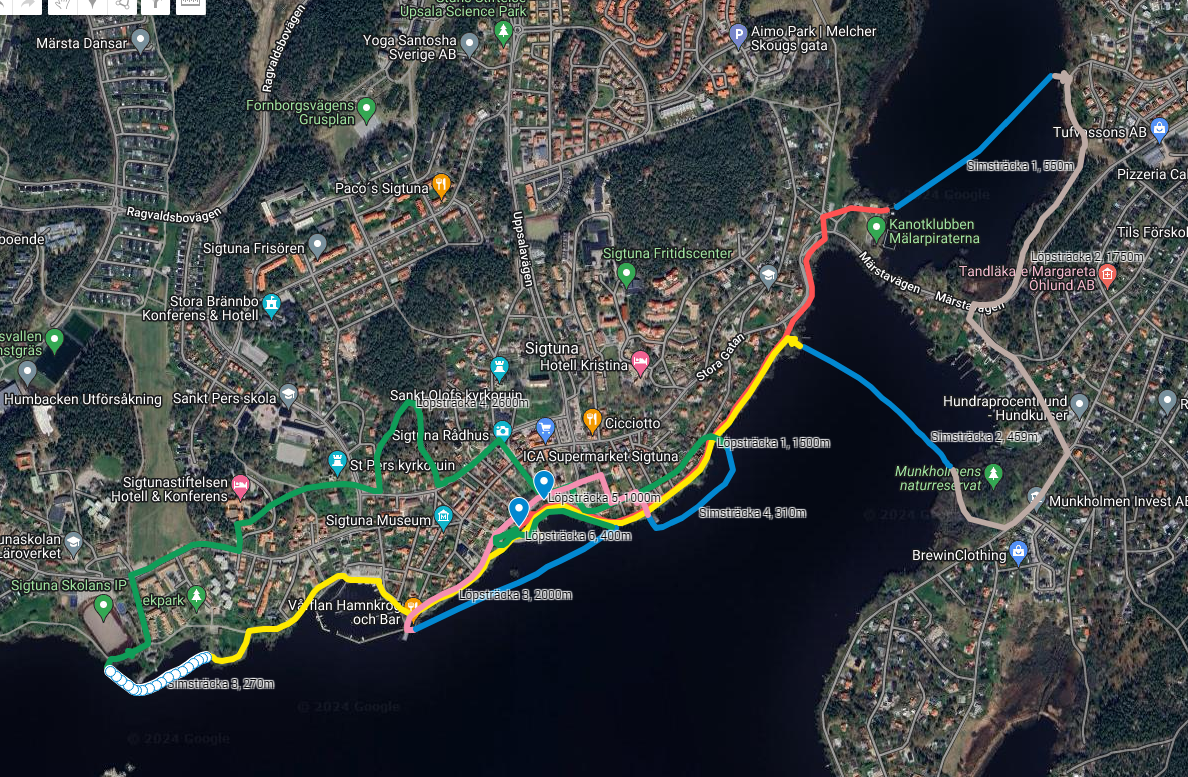 Löpning 5: Start ångbåtsbryggan till båthamnen. 1000m ROSA